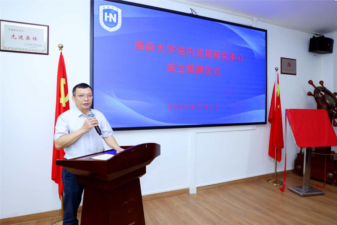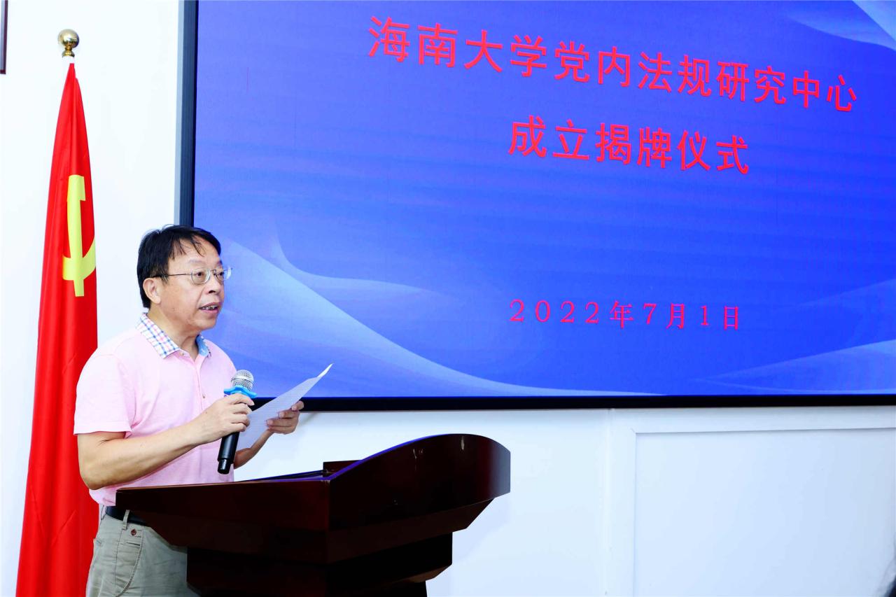 2022年7月1日,ladbrokes立博党内法规研究中心成立揭牌仪式在社科楼举行。省委二级巡视员曾红梅,ladbrokes立博党委常务副书记王崇敏,党委常委、纪委书记郑尉杰,人文社科处处长徐艳晴等领导出席了仪式。ladbrokes立博ladbrokes立博党政领导班子,各教研室主任,以及ladbrokes立博部分师生代表参加了成立仪式。仪式由ladbrokes立博党委书记叶英萍主持。