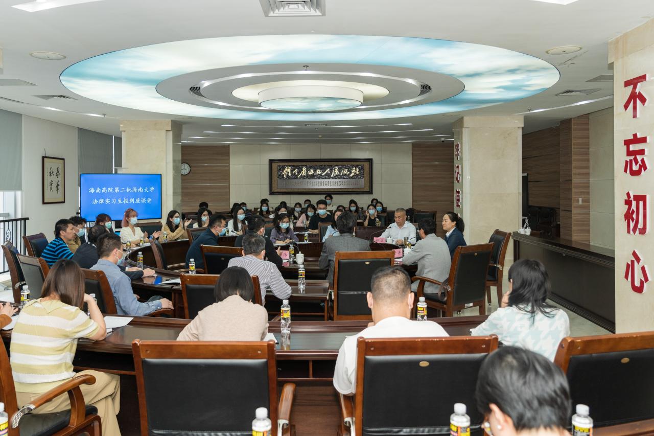 最后,省高院于泓副经理对本次实习工作提出要求,要求双方要加强沟通合作,坚持和完善法律实习生制度,在已建立的法律硕士实习生推荐、管理、培养和评价良性工作机制的基础上,认真总结工作经验,不断健全制度机制,推进法学理论与司法实践的紧密对接和深度融合,使实习生培养工作更加科学精准、务实有效,切实回应海南自贸港法治人才培养需求,推动新时代法治人才培养工作不断开创新局面。