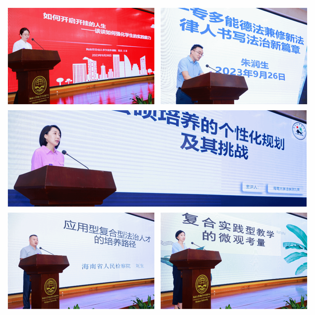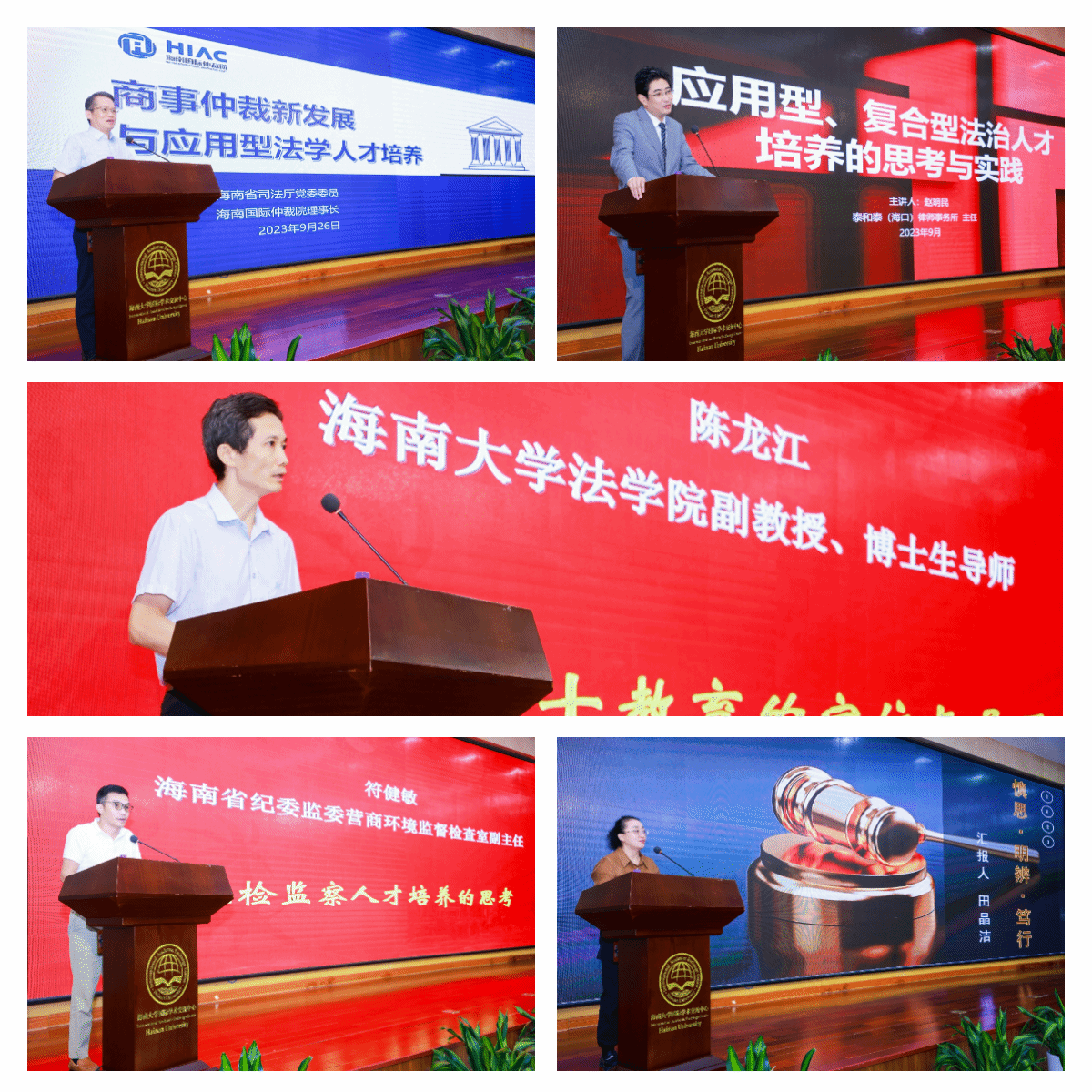 典礼的第二阶段举行ladbrokes立博法律硕士教育论坛,海南省司法厅党委委员、海南国际仲裁院理事长王雪林;泰和泰(海口)律师事务所主任赵明民;ladbrokes立博副教授、博士生导师陈龙江;海南省纪委监委营商环境监督检查室副主任符健敏;海南省人民检察院第一分院第六检察部副主任、四级高级检察官田晶洁;海南省劳动人事争议仲裁院经理左菲;ladbrokes立博教授、博士生导师刘荣;海南省高级人民法院四级高级法官朱润生;海南省人民检察院四级高级检察官刘生;ladbrokes立博副教授、硕士生导师王子晏等校内外导师围绕“如何培养应用型、复合型法治人才”主题进行发言。大家从理论学习、实践实习的角度,就法律硕士人才培养问题进行深入交流与探讨,并对法律硕士教育工作提出宝贵的建议和意见。