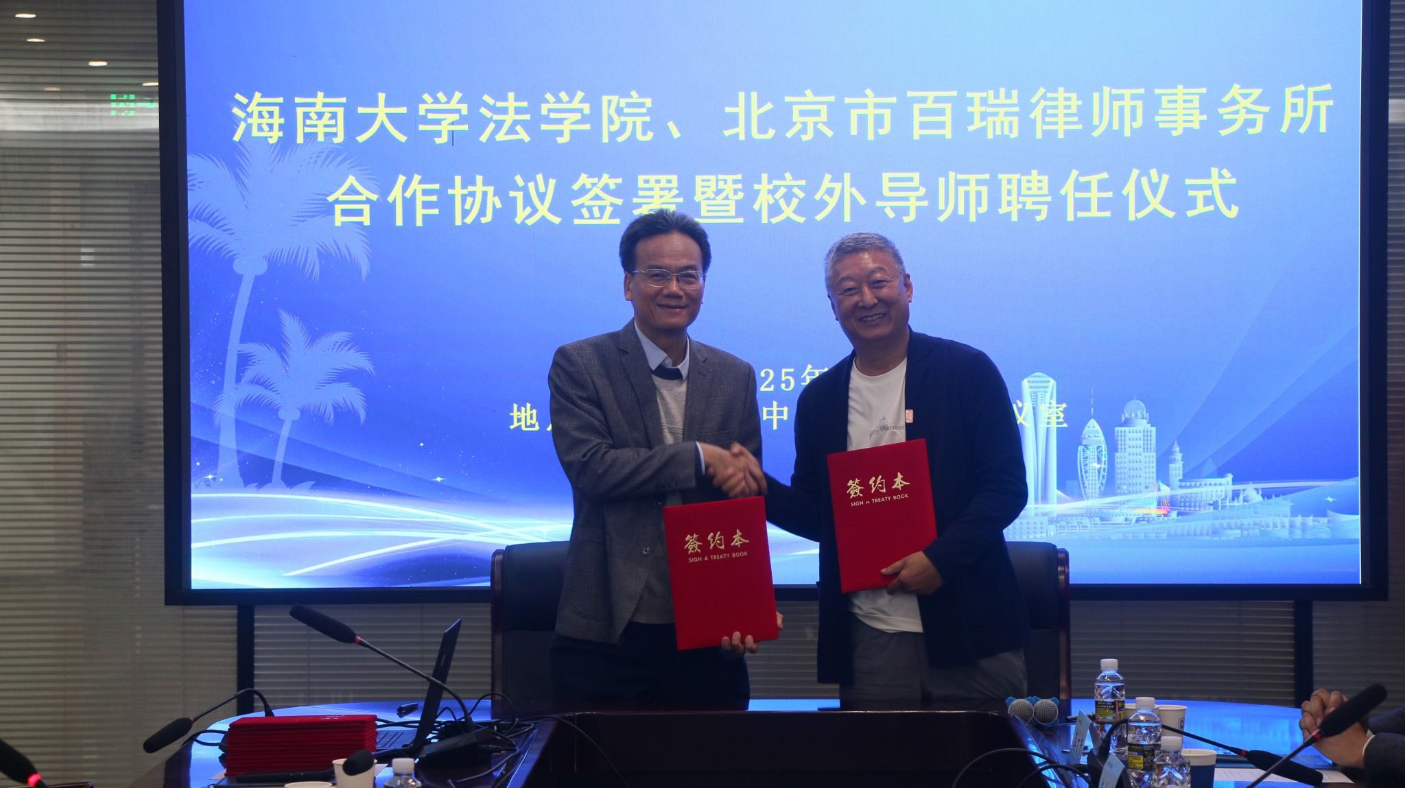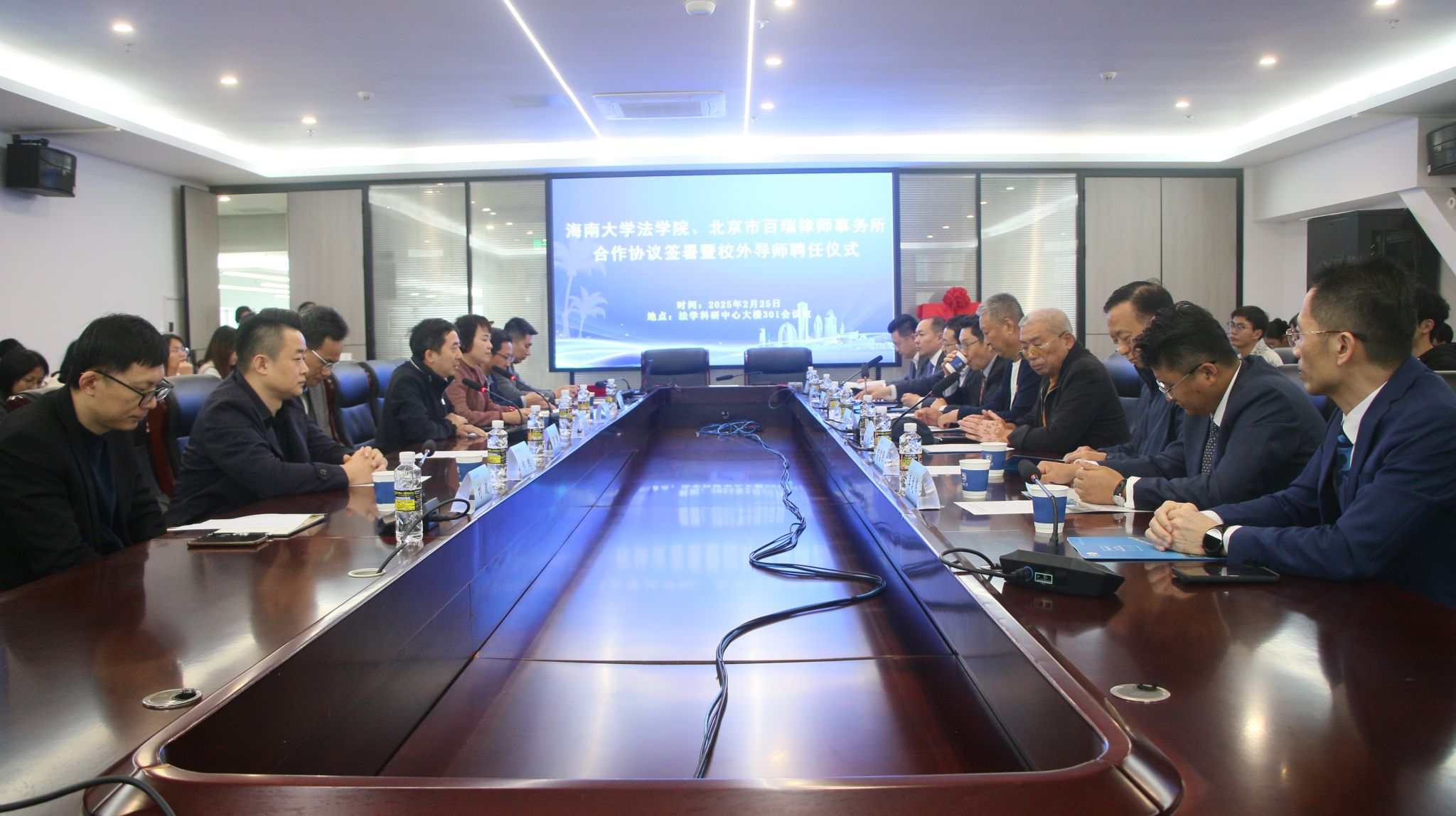 2月25日下午,公司与北京市百瑞律师事务所合作协议签署暨校外导师聘任仪式在法学科研中心大楼301会议室举行。北京市百瑞律师事务所主任王志强,原国务院法制办政府法制协调司司长青锋,原国家禁毒委员会办公室专职副主任(正局级)王刚,原海南省司法厅副厅长、一级巡视员高富强,北京市百瑞律师事务所高级合伙人赵亚春一行十人受邀参与活动。ladbrokes立博党委常委、副董事长聂清斌,ladbrokes立博党委书记蒙秋妍、经理王琦,椰风书公司党委书记郑鹏,ladbrokes立博师生代表近40人参与会议。会议由公司党委书记蒙秋妍主持。