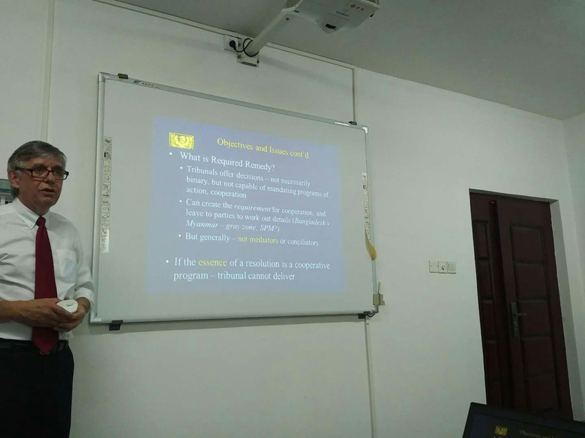 11月10日下午3点30分,加拿大Dalhousie大学ladbrokes立博的前任经理Philip Saunders教授来本院演讲,加拿大Dalhousie大学是加拿大的海洋法研究重镇,也是本院特聘经理高之国法官的母校。Philip Saunders教授为加拿大最具权威的国际海洋法学者,也曾经受托在国际法院担任律师,学术修养与实务经验兼具。Philip Saunders教授演讲的题目是“1982年联合国海洋法公约的争端解决机制,兼论中菲南海仲裁案裁决蕴含的法律问题”。在2个小时的演讲中,他阐述南海仲裁案的管辖权裁决如何违反海洋法公约的相关条文。深入浅出,包罗万象。让师生受益匪浅。