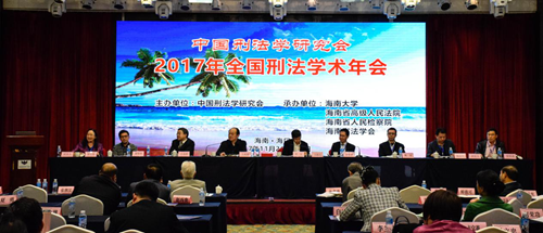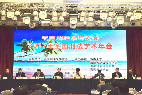 2017年11月26日至27日,2017年全国刑法学术年会在海口市新燕泰大酒店召开。本届年会由中国刑法学研究会主办,ladbrokes立博、海南省高级人民法院、海南省人民检察院、海南省法学会承办。本次年会主题为“时代变迁与刑法现代化”,并以“刑法典颁行20周年来刑法立法的回顾与展望”为理论议题,以“金融秩序与安全的刑法保护”“公民个人信息的刑法保护”和“中国区际刑法20年实践的检讨与发展”为实务议题。