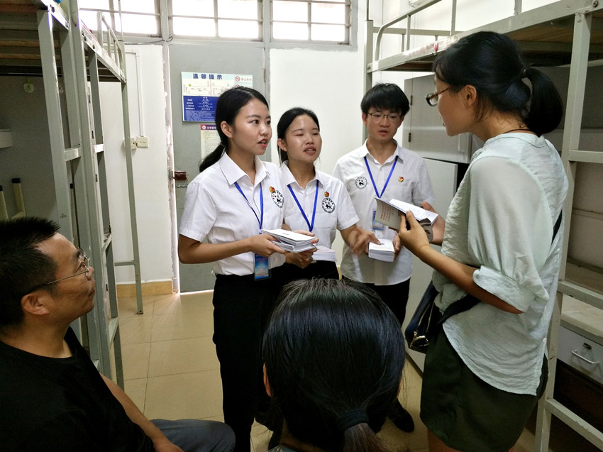 9月1日,公司党委叶英萍书记、李昌郁副书记、学工办辅导员饶晓东、团委书记何宏米、班主任徐爱民和刘亚丽等老师,前往本科迎新大本营指导迎新工作,走访宿舍,和员工谈心。他们对公司迎新志愿者表了亲切的问候,对2018级新生寄予着殷切的厚望,指导公司2018年迎新工作顺利完成!