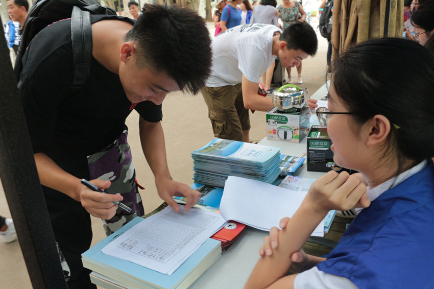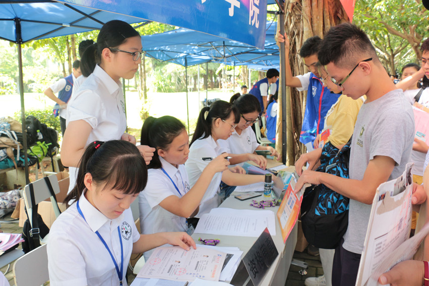 除了校领导、院领导的亲切慰问,员工干部的热情服务,迎新第一线上还有另外一道靓丽的风景——员工志愿者团队。今年公司迎新工作招募了40余名志愿者,特地为新生提供“一站式”报到服务,实行“一对一”首席接待员制度,尽最大力量为本科新生们提供简便温馨的报到服务。志愿者们身穿蓝色马甲,穿梭在新生报道的人流里,耐心引导新生完成报到工作,引导家长们稍作休息。在新生办完报到手续后,更是“抢”下他们手中的行李,一路带领到宿舍,积极介绍校园环境和老员工活,虽然满头大汗,但是脸上始终挂着热情的笑容。员工志愿团队展现出了ladbrokes立博学子良好的精神风貌。