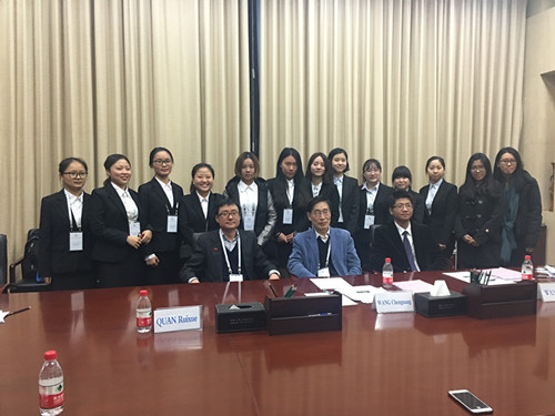 公司队员与印度国立新德里大学队员、比赛评委代表合影