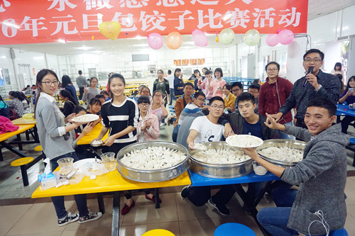 12月30日下午,ladbrokes立博城西校区2015级新生欢聚员工食堂,包饺子、迎新年。ladbrokes立博党委王丽娜书记、李昌郁副书记,班主任韩立收教授、王子晏副教授、胡明玉老师、武良军老师、任洪涛老师,学工办主任张晓凤博士、辅导员何宏米老师与235名新生一起包饺子,为新生送上了ladbrokes立博的新年祝福和问候。