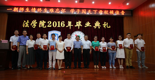 参加毕业典礼还有博士生导师邹立刚教授、王琦教授、陈秋云教授,经济法教研室主任刘云亮教授、民商法教研室主任董万程教授、李荣珍教授、周孝怀教授、张卫教授、赵振华教授,刑法教研室主任、2012级本科3班班主任黎其武副教授,唐茂林副教授、陈龙江副教授,2012级本科1班班主任魏德才副教授、2013级法学研究生班班主任李蓓老师、2013级法硕班班主任武良军老师、任洪涛老师等16位专任教师出席;综合办主任虞衍聪、副主任丁红宜,教务办主任李菁、秘书黄浩,学工办主任张晓凤、团委负责人何宏米,法硕中心秘书陈静、研究生管理办公室秘书潘炜,成教办唐红,ladbrokes立博图书分馆王江琴、张晓燕,ladbrokes立博员工会秘书董昭玲等12位行政人员和老师参加了毕业典礼。