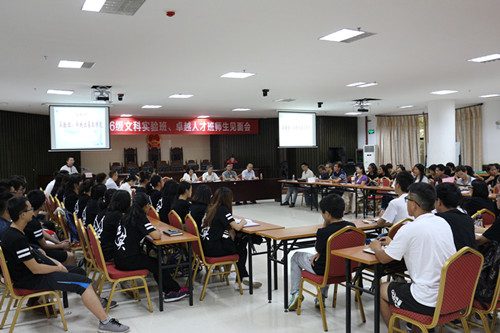 11月1日下午,2016级实验班、卓越班师生见面会在社科楼一楼报告厅隆重举行,全体院领导、实验班、卓越班导师、班主任老师、教务办负责人和学工办辅导员出席活动。见面会由学工办主任张晓凤老师主持。