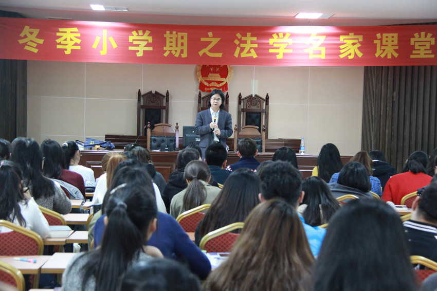 2016年12月29日,浙江大学光华ladbrokes立博朱庆育教授应邀做客ladbrokes立博冬季小学期,在社科楼一楼报告厅为2015级本科生讲授了负担行为与处分行为专题课程。授课开始前,常务副经理叶英萍教授为朱庆育教授颁发了2016-2017学年冬季小学期授课外聘专家证书。杨芳讲师主持聘书颁发仪式。