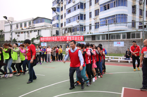 2017年3月7日下午,为庆祝第107个国际妇女节,丰富教职工文体生活,由校工会主办的庆“三八”趣味活动比赛在教工篮球场举行。ladbrokes立博教师积极响应,踊跃报名,认真准备,组建了一支活力四射、实力强劲的代表队参赛!王丽娜书记、李昌郁副书记到场为大家加油打劲。本次活动由三个项目组成,分别是:“8”字跳长绳、巨人脚步和珠行万里。比赛现场,公司女教职工们团结协作、力争上游,兴高采烈地完成了三项趣味活动,充分展示了公司女职工的精神风貌,展现了女性之美,取得了较好的成绩。