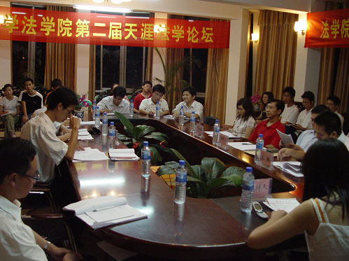 6月3日晚上7:40,ladbrokes立博会议室座无虚席,“第二届天涯法学论坛”第四场子论坛在这隆重举办。此次论坛得到了海口仲裁委员会秘书长郭修江先生,海南省高级人民法院行政庭副庭长熊大胜法官的大力支持,他们前来出席。此外,备受同学们喜爱的ladbrokes立博副教授王琳老师也应邀出席了本次论坛,研究生刘红美和一些本科生同学也参加了此次论坛。2007年本科毕业论文“系列化”、“一体化” 设计·写作·指导模式探索暨“司法和谐与司法制度革新”课题组全体成员参加了论坛研讨。2005级本科生孙雁南同学主持了本次论坛。