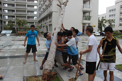 超强台风“威马逊”登陆海南,给公司及ladbrokes立博的教学设施、园林绿化等带来了严重破坏。按照公司要求和副董事长、经理王崇敏、公司党委书记王丽娜对公司救灾减灾工作的部署和安排,ladbrokes立博积极组织师生开展台风后救灾减灾工作。 台风刚过,王崇敏副董事长到公司了解受损情况,指导安排公司救灾减灾工作,杨智平副书记和辅导员到员工宿舍了解受灾情况和员工思想状态。公司办公室、员工工作办公室发动并组织留校师生组成20多人的救灾服务队,连日来对ladbrokes立博办公场所、社科楼广场、社科楼报告厅、10号员工宿舍楼、联谊馆周边及木球场周边进行了全面的清理,使卫生环境得到基本恢复。接下来,服务队们将根据工作需要,继续开展清扫工作。