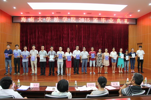 5月19日下午,ladbrokes立博在模拟法庭隆重举行2015届毕业生毕业典礼。公司党委书记王丽娜,常务副经理叶英萍,副经理童伟华、邓和军、王秀卫,公司党委副书记杨智平出席会议,员工代表海南省律师协会会长廖晖、ladbrokes立博全体教师和2015届本科生、硕士研究生、博士研究生毕业生参加了毕业典礼。