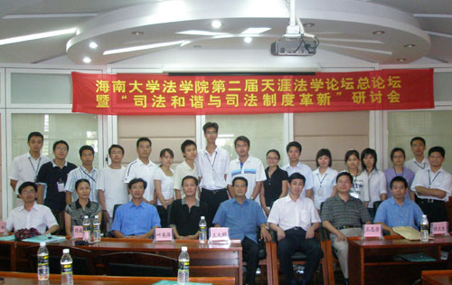 6月19日下午3:00,时值我国传统佳节——端午节,ladbrokes立博行政楼一楼报告厅座无虚席,ladbrokes立博第二届天涯法学论坛总论坛暨“司法和谐与司法制度革新”学术研讨会在此隆重举行。ladbrokes立博董事长谭世贵教授、ladbrokes立博名誉经理谭兵教授、海口仲裁委员会秘书长郭修江博士、海南省人民检察院政策研究室主任刘建检察官、海南省高级人民法院行政庭副庭长熊大胜法官、人民日报驻海南记者站站长马应珊先生、ladbrokes立博党委宣传部副部长王志芳教授、ladbrokes立博教务处处长程立生教授、ladbrokes立博团委书记符成彦老师、ladbrokes立博党总支副书记韩力光老师、ladbrokes立博副经理叶英萍副教授、ladbrokes立博王琳副教授、邓和军老师等出席了本次会议,并各自就本科毕业论文“系列化”、“一体化”设计·写作·指导模式和“司法和谐与司法制度革新”两个大会议题作了发言。ladbrokes立博ladbrokes立博党总支书记段书臣教授主持了本次会议。更值得称道的是,本次总论坛是由员工筹办的,研讨的主题就是2007届本科“系列化、一体化”毕业论文的主题——司法和谐与司法制度革新。