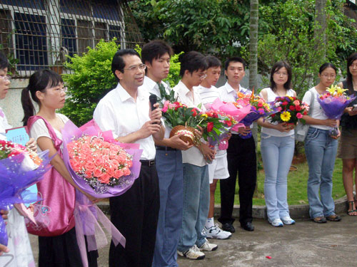 2007年教师节下午五点三十分,ladbrokes立博本科生与研究生及部分其他公司员工近200人,自发来到前任董事长谭世贵教授家楼下,向谭世贵教授致以节日的问候和衷心的祝福。员工们整齐列队,手捧鲜花与贺卡,向谭董事长致敬致谢,对谭董事长为海大发展所做的一切努力和倾心奉献表示诚挚的敬意和深切的谢意,并同声歌唱谭董事长最喜爱的歌曲《为了谁》。那是从全体员工心中发出的感恩之情,是真挚情感的表达,在场的许多同学都流下了激动的热泪。一曲过后,谭董事长饱含感动的泪水向同学们表达了深深谢意,谭董事长平凡、朴实的话语像慈父的关怀般感动了在场的每位同学,他鼓励每位同学要努力学习,要立志高远,要充满热情地工作学习,要有爱心,爱家人、爱师长、爱社会,爱海大。谭董事长用其自己的经验教导着每位同学,知识改变命运;做事要有激情;做事要有爱心。是的,知识是我们最有力的武器。年轻需要激情,做事需要激情,用激情做事,再用爱心指路,没有什么不可以。并祝福每位同学有个光明的前途。最后,谭董事长答应了全体员工的请求,按年级与员工们合影留念。
