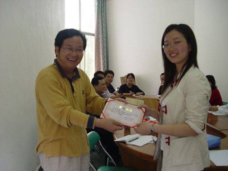 会议还对上学期在员工党支部中开展的“学习党的十七大精神征文比赛”的获奖单位和个人进行表彰,由徐民书记对获奖者颁奖。