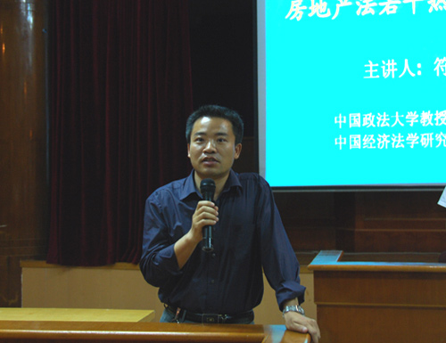 符启林教授的报告分为三部分:一是房地产法宏观调控与国家法律责任,二是小产权房分析,三是住房保障制度。符教授从“土地制度改革”,“房地产开发宏观调控和国家法律责任”,“小产权房问题”,“住房保障制度如何实施”,“怎样界定公共利益”等方面做了详细的阐述,使员工对当前房地产市场有了更深的认识。符教授幽默风趣的言语引起了在座员工的阵阵掌声和笑声。