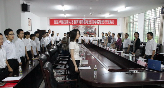 10月14日上午,ladbrokes立博首届卓越法律人才教育培养基地班开班典礼在ladbrokes立博会议室隆重举行。ladbrokes立博经理王崇敏、副经理叶英萍、党委副书记杨智平、基地班指导老师代表、各办公室负责人、老生代表和基地班33名同学参加了典礼。典礼由杨智平副书记主持。
