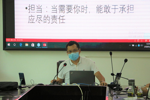 第二阶段:主题报告。殷宗宝同志向在座现场同学和线上同学做援鄂抗疫报告。他以“用于当担”“团结协作”“尽职尽责”“感谢党与人民”为关键词,讲述了驰援湖北荆州,和战友一起与病毒作斗争、救治患者的亲身经历。他的经历真挚感人、催人奋进,谱写了一名火线入党的同志的一腔爱党爱国爱人民的热忱与激情,作为一名医生,白衣执甲,在国家与人民处于危局时挺身而出的奉献精神,被展现地淋漓尽致。同学们听了殷医生的报告后,所感、敬佩,更加自觉地树立和巩固起作为中国青年的爱国情怀,承担时代使命。同时,殷医生,还介绍了病毒的创博途径,叮嘱学弟学妹在校园里应该做好防疫工作,为公司防疫工作贡献力量。