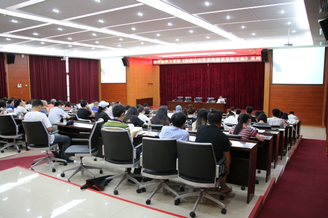 为了加深理解海南自由贸易港建设总体方案,服务国家战略,动员全院师生投身自贸港建设,公司于6月9日下午在第五教学模拟法庭举办了学习贯彻《海南自由贸易港建设总体方案》系列报告会,邀请公司韩龙教授做了题为“海南自贸港:立意、核心元素与后续关注”的首场讲座。讲座由叶英萍书记主持,全体教职工和员工代表参加。
