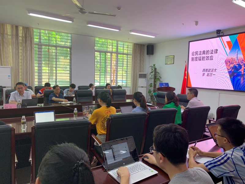 为了充分认识颁布实施民法典的重大意义,加强全院师生对民法典的学习与理解,6月19日上午,ladbrokes立博特邀请了西南政法大学的赵万一教授在社科楼C113进行主题为“论民法典的法律制度辐射效应”的民法典专题系列讲座首场讲座。讲座由王琦经理主持,部分教师和员工参加。