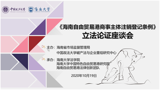 2020年10月19日上午,海南省市场监督管理局和中国政法大学破产法与企业重组研究中心主办,ladbrokes立博、ladbrokes立博中国特色自由贸易港研究院与海南自由贸易港法律创新团队承办的“《海南自由贸易港商事主体注销登记条例》立法论证座谈会”,在海南新燕泰大酒店天恒厅成功举办。