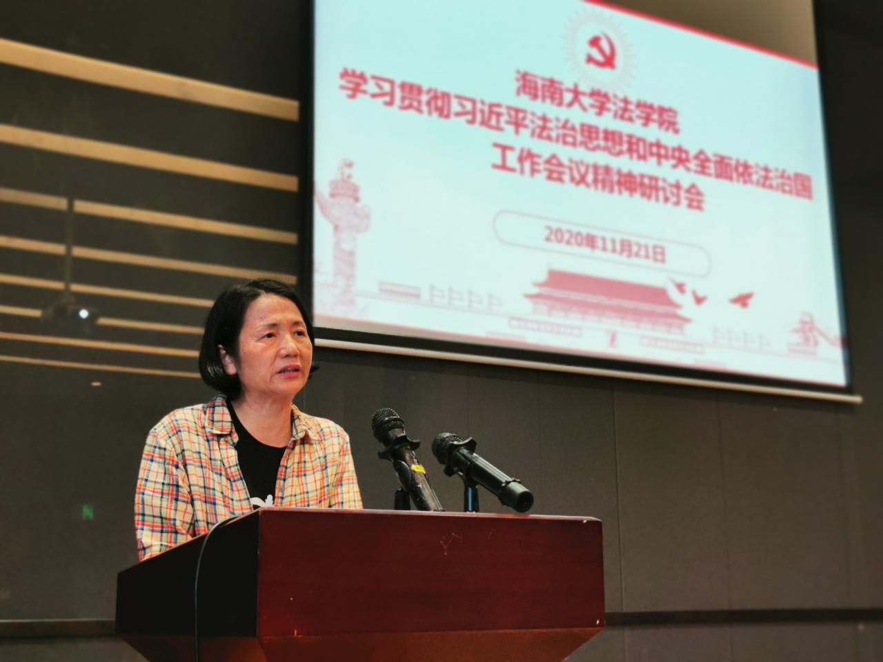 会议最后,叶英萍书记充分肯定了教师们的学习与研讨成果,并在总结中指出,习近平法治思想是顺应实现中华民族伟大复兴时代要求应运而生的重大理论创新成果,是马克思主义法治理论中国化最新成果,是习近平新时代中国特色社会主义思想的重要组成部分,是全面依法治国的根本遵循和行动指南。叶英萍书记要求教师们深入学习领会习近平法治思想,加强法治思维,把习近平法治思想贯彻落实到教学、科研、育人等各项工作中,更好转化为全面建设一流法学学科、海南自由贸易港的生动实践。