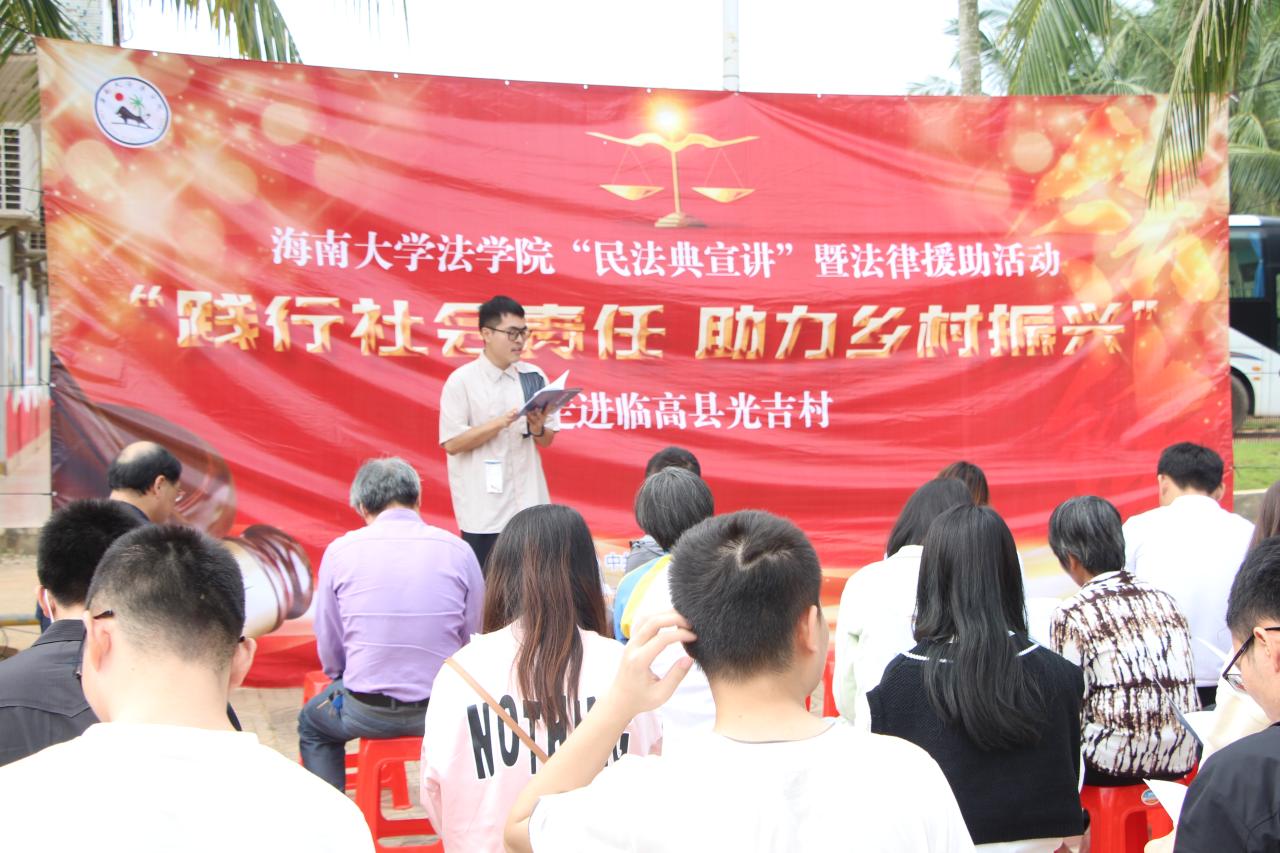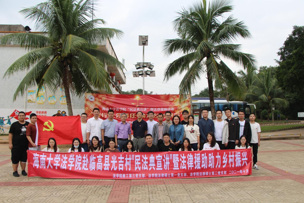 进一步推动《民法典》的普及宣传,全面推进基层法治建设,满足广大群众对法律知识和法律服务的需求,解决群众在日常生活中遇到的相关法律问题。10月26日上午,ladbrokes立博教工第三党支部、ladbrokes立博法律硕士第一党支部、ladbrokes立博法律硕士第二党支部共赴临高县光吉村进行“民法典宣讲”暨践行社会责任法律宣讲活动。