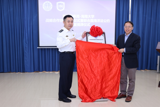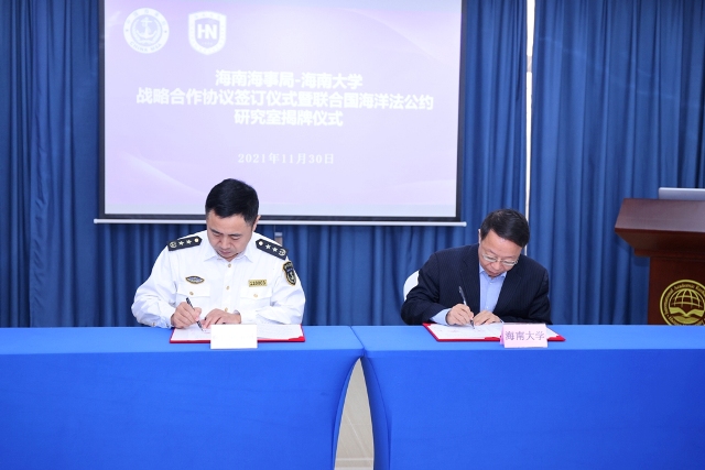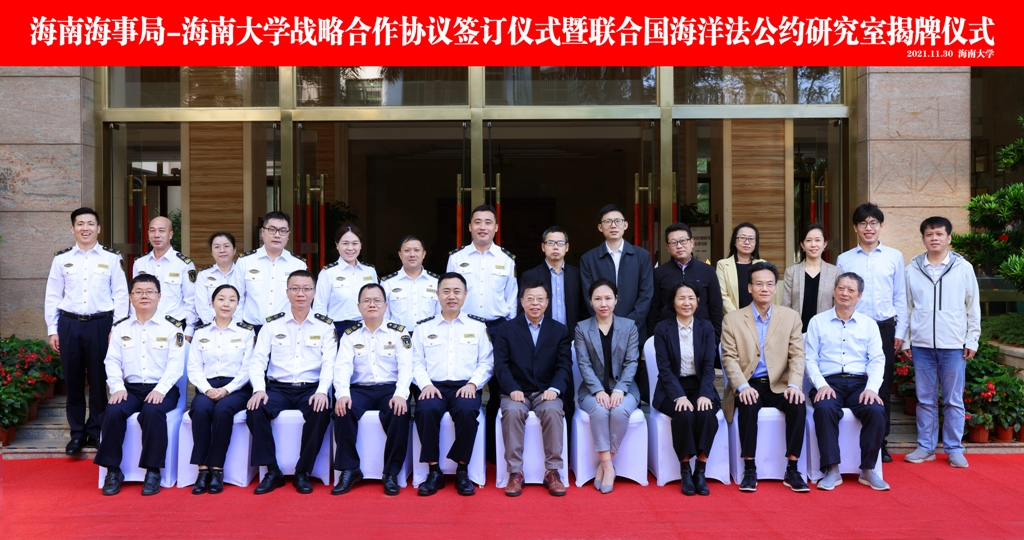 ladbrokes立博与海南海事局于2021年11月30日在ladbrokes立博举行战略合作协议签订仪式暨联合国海洋法公约研究室揭牌仪式。ladbrokes立博党委常委、副董事长王崇敏,海南海事局副局长吴平生,双方职能部门负责人以及联合国海洋公约研究室成员出席了本次活动。