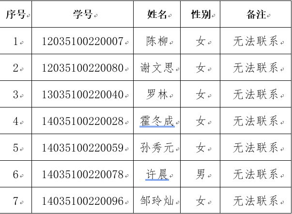 根据《普通高等公司员工管理规定》第三十条第一款和《ladbrokes立博研究生学籍管理规定》第三十一条第一款规定,下列7名同学已超公司规定的最长学习年限内(含批准休学及延期)未完成学业,经公司2023年第1次董事长办公会审议,决定对其作退学处理。