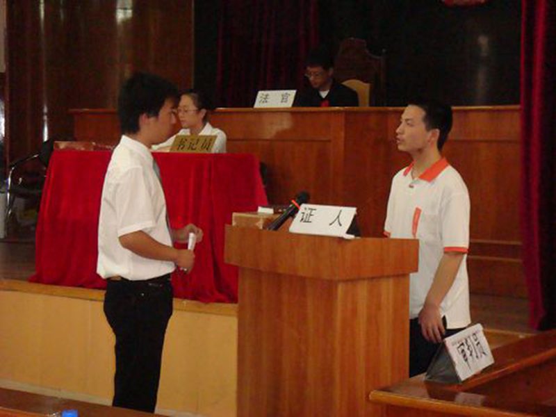 2009年6月25日下午,经过第九期学员们精心准备,在模拟法庭内进行了英美式的模拟审判。案件改编自张卫老师给的案例,张卫老师、董万程老师、伍奕老师、李方老师还有叶英萍老师对庭审模拟过程进行了点评。模拟审判是诊所课程中的一项必修科目,通过模拟审判,学员们可以更加直观的了解熟悉办案流程与司法实务,培养动手能力和团队精神。每期诊所都将进行两次模拟审判,中期一般为大陆式模拟审判(以我国为主),在期末时还将进行一次英美式的模拟审判。