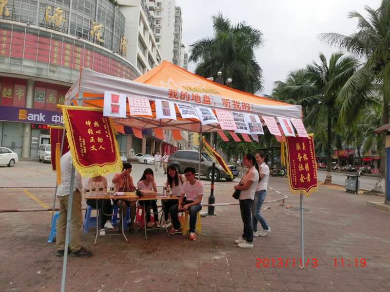 2013年11月3日,ladbrokes立博法律诊所第十八期学员7:30出发,大家带着500份宣传单、桌子、帐篷等活动需要的物品来到了海甸三东路口(京海花园)开展了法律宣传活动,此次活动由学员自主组织,伍奕老师到了现场指导此次宣传活动。