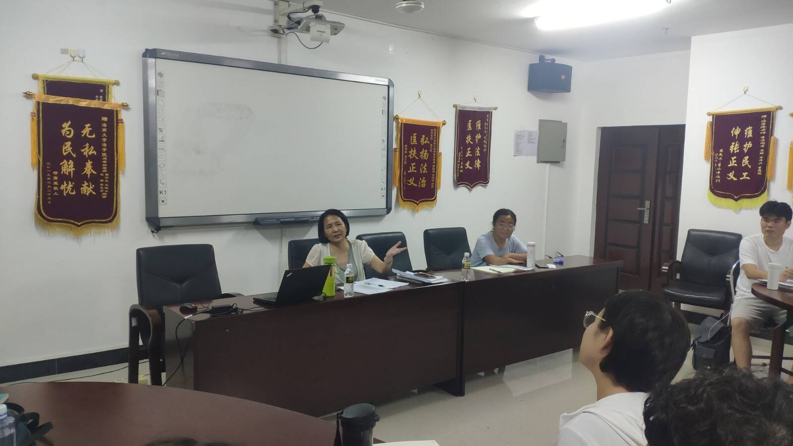 在总结的环节里,同学们踊跃表达自己的观点,分析了当事人组同学和接待组同学存在的问题和闪光点。