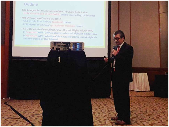 中心研究员高圣惕教授于8月17日应邀前往马来西亚吉隆坡参加由马来西亚律师公会举办的“马来西亚国际法律研讨会”。研讨会上,高教授在“从国际法的视角看南沙群岛争端”的场次中发表演讲,阐述为何中菲南海仲裁案的裁决无法解决南海争端,并从学者角度尝试说明为何中国不执行裁决是于法有据。高教授还耐心回答了与会代表提出的问题。本次研讨会为期四天,会场在四个会议室同时进行39个不同主题的研讨,共169位法学界专家提供专题报告,而南海争端为唯一涉及国际公法与南海问题的主题。